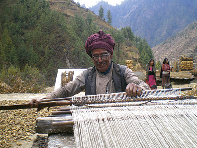You can tell where you are in Nepal from the textiles you see and feel around you. The culture and traditions of Jumla are woven into the lius and peruas that are created in the remote villages of these Western Himalayas. Fashioned by hand, by whole families - young and old, men and women - these textiles represent the height of local craft.
