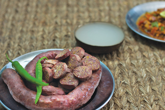 Much of the different cuisines of different clans and regions of the country are derived from the need to fill stomachs, rather than the practice of any special culinary skills. However, it must be said that Newar cuisine is a bit different from the pack, which perhaps reflects on the fact that the more prosperous a people are, the more varied their cuisine. The Newars have a really large variety of dishes. Just imagine, bread alone comes in a score of diverse varieties, and these you can taste at the traditional mari pasals (bread shops) around the valley. Like other cultures universally, religious functions, festivals, auspicious occasions, and celebrations call for a different kind of foodstuff, and here too, the Newars excel. They serve a mix of items collectively called ‘sangha’ that includes wo (lentil pancake-like dish), fried meat and fish, duck egg, curd, and aila (local alcohol) right after a ritual is over. It could be said to be an appetizer, for the feast is yet to come.