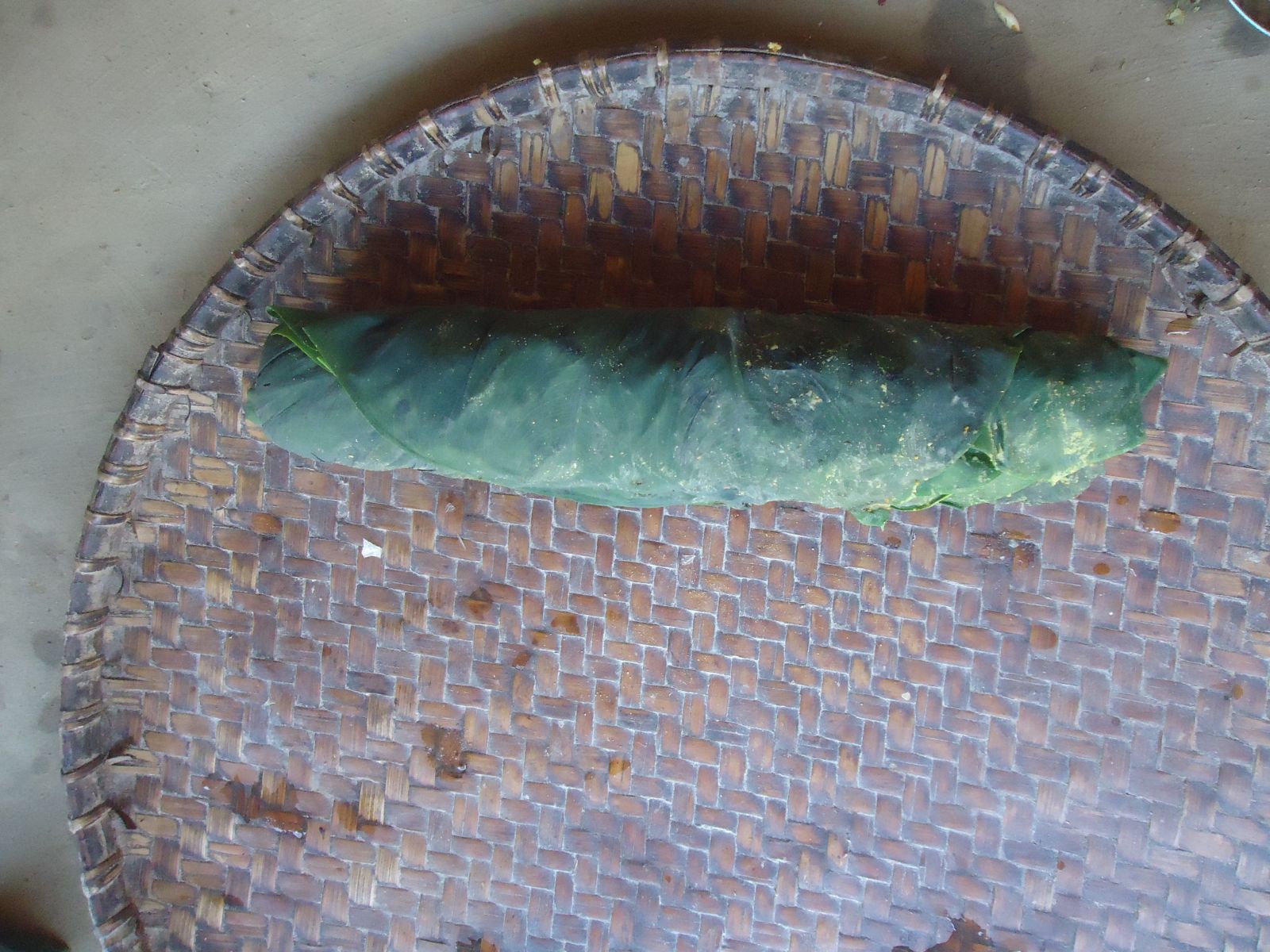 Tender taro leaves are collected, washed, and put out in the sun to let them wilt a bit. Then, a layer of slightly wilted leaves are spread, and a paste of rice flour, turmeric powder, and a pinch of salt, along with some select spices is applied on the leaves. Another layer of leaves are pasted above it, and then the paste, and again, the leaves on it. The leaves are then rolled into a cylindrical shape and cut into small pieces that look like small cutlets.