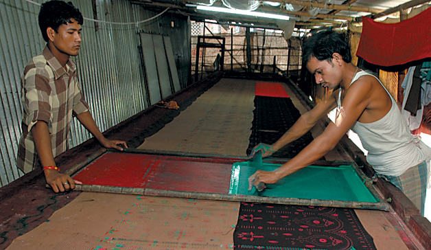 Unlike Khalil, most of his workers are descendants of silkscreen printers from Bihar. When business is good, he hires about eight people who work in pairs. “There is a lot of work during the winter because it is the season for quilts. Most of the work we get is for cloth that goes into making quilts. The other type of work we get is orders from Thamel. These customers give us the patterns and we make them on the screen.” The work load is high for about six months after which there is a slump. But Khalil also blames the unhealthy competition for the slump as there are now too many players in the field, and they have also brought the prices down.