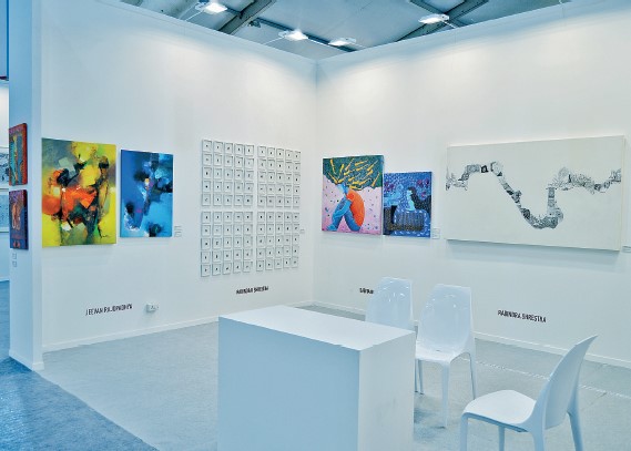 It has been the objective of NAC to promote the art and artists of Nepal, with a board of members who strongly believe in the same, the commercial side never taking precedence. We seek financial assistance from our promoters who sponsor the fair, enabling our participation in the last three years. In all three years, NAC has been able to showcase and make aware the best of Nepali art to a global audience, providing an international platform to our artist from where they can take flight. Unlike other commercial galleries at the fair, we were among the three non-profit organizations present there this year. Because it is the objective of NAC to promote the art and artists of Nepal, as mentioned earlier, we showcase a different set of artists each year. This enables us to reach out to a larger number of artists to present at the international event. Despite numerous hurdles and challenges, our booth managed to draw the attention of the visitors. A particular visitor mentioned that it was our booth that she spent the longest time, the artworks being so reflective. The general opinion was that our booth was very different from the rest. The artworks were conceptual, in comparison to most being only aesthetic. I personally would title our booth as the most photographed, with the triptych of Sujan Dangol’s “Three Generations” being an artwork that pulled the attention, related to, and amused all generations!