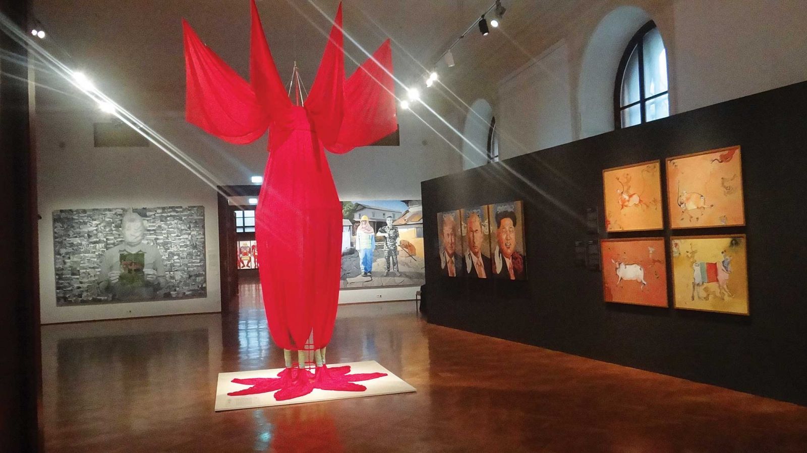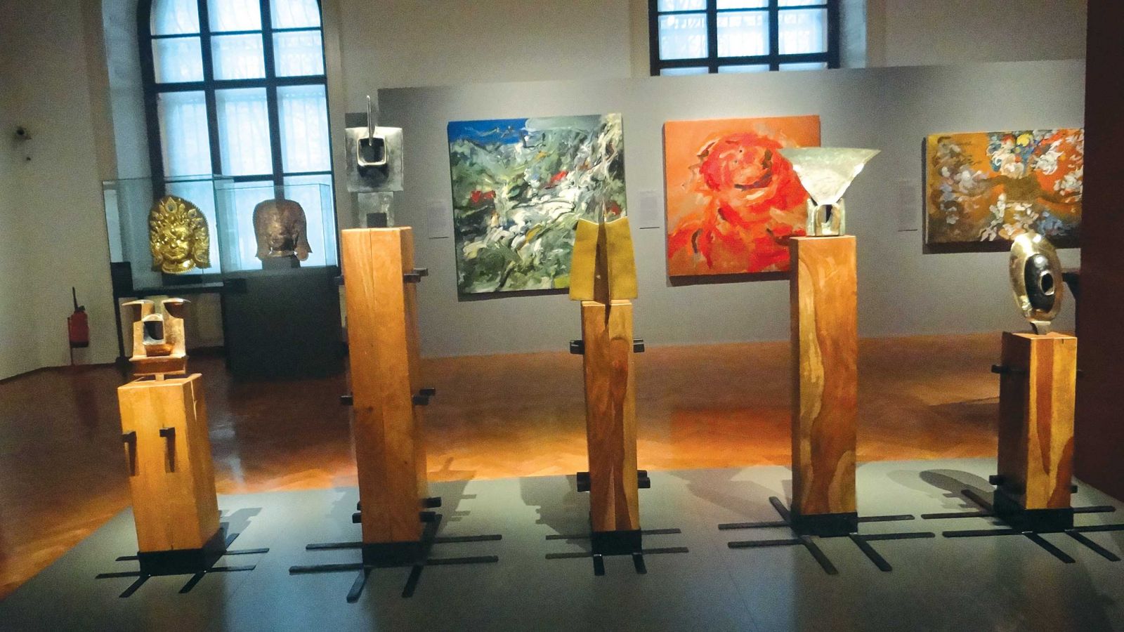 The paintings were displayed in the order that was decided earlier, the installation art pieces were meticulously put up, lighting arranged to highlight each artwork, captions were placed alongside. Three statues of Nepal belonging to the museum’s collection (dating from the 15th century) were also displayed alongside to show a connection of the past with the present.