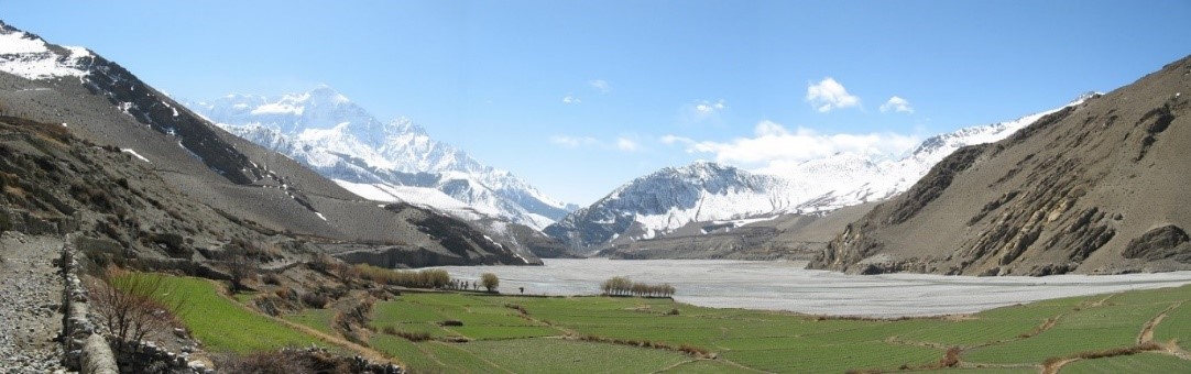 For the Tibetologist David Snellgrove, it was the physical features ? the houses, the monastery, and the strategic location that gave it a uniquely dominant identity. Kagbeni (9,200 ft./2804 m.) sits alongside the Kali Gandaki river north of the Dhaulagiri and Annapurna massifs in Mustang District, well within Nepal’s Tibetan culture area. Snellgrove wrote about it in ‘Himalayan Pilgrimage’ (1961), a book describing a long research expedition along the border. He wrote –