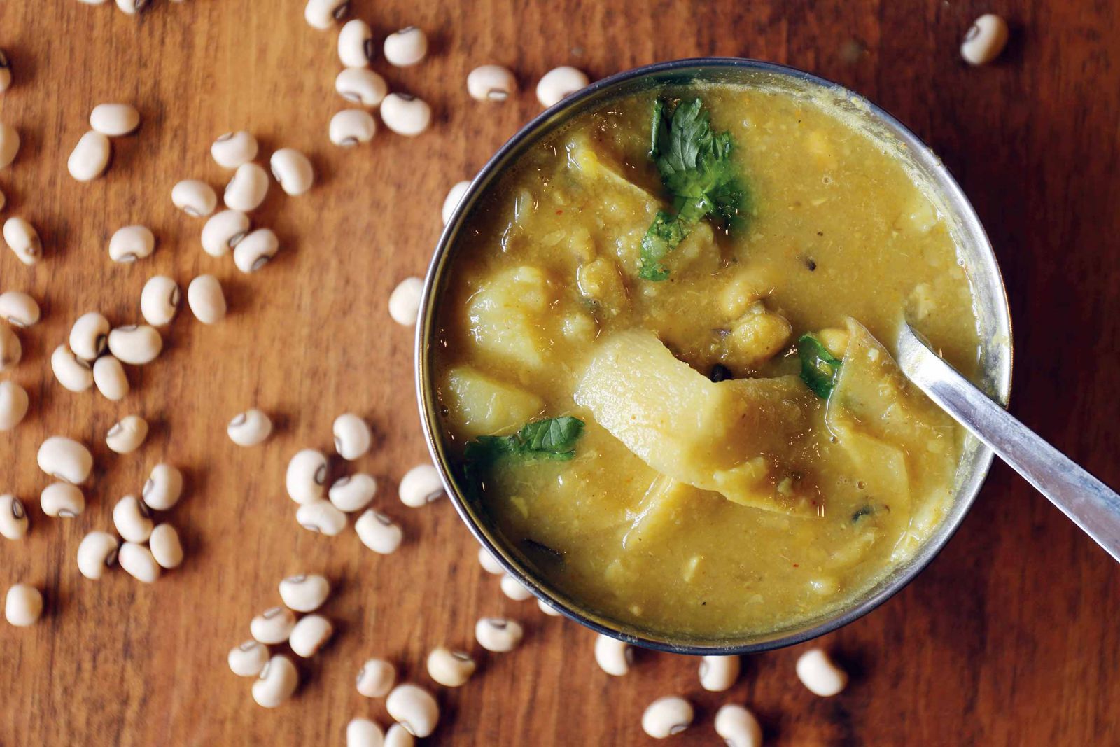 There aren’t that many vegetarian dishes in Newari culture, but aloo tama is one such Newari dish for vegetarians that beats it all. It is a classic soup made with bamboo shoots, potatoes, black eyed peas and a variety of spices. It has a rather sour taste due to the fermentation of the bamboo shoots and is enjoyed the most on rainy or cold days.