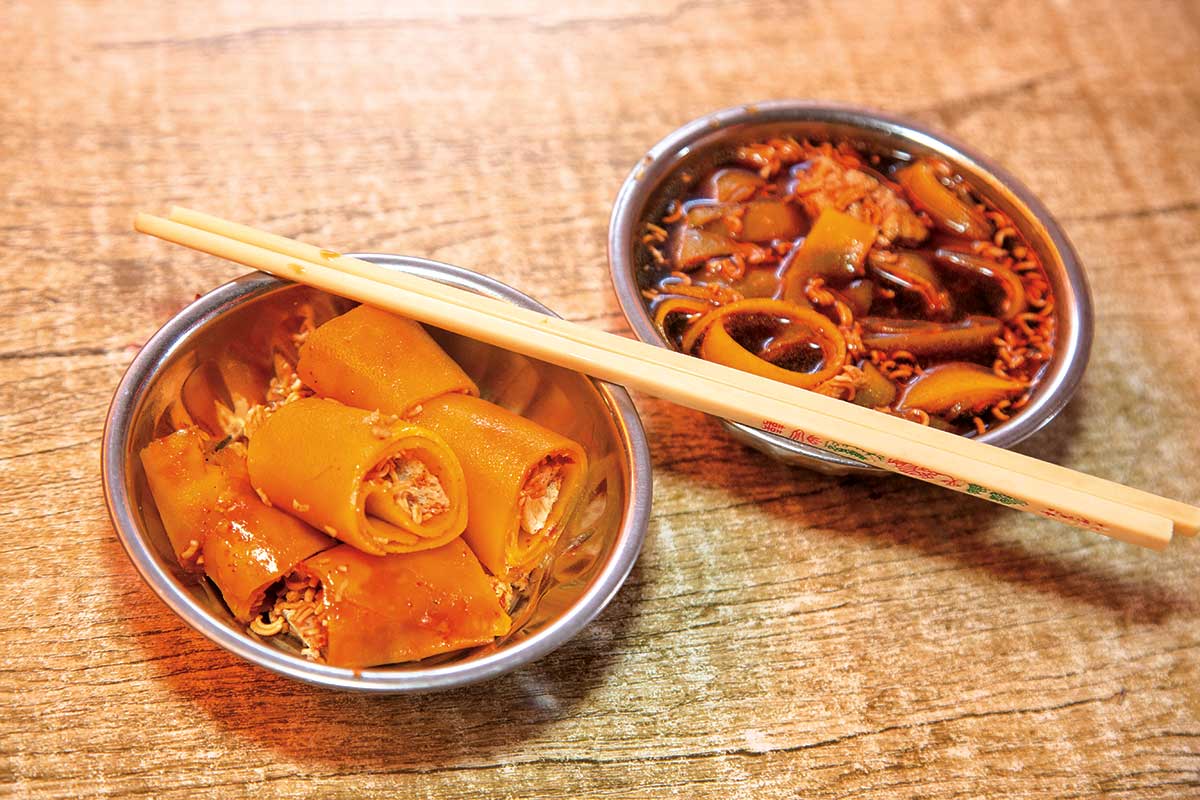 1) Laphing: There’s no doubt that laphing has become a very popular snack, especially amongst young people and spice-lovers. It’s a cold spicy noodle dish, with classics options like chau chau (instant noodles), chips and plain laphing. Now different places are coming up with their own ideas and offering new recipes like keema (mince meat) laphing, egg laphing, bacon laphing and so on. Apart from the classic flavors, these new recipes are a must try, and who knows, you might stumble upon something even more exotic. Laphing is served either plain or with soup, and you can find an array of laphing shops in Bouddha, so get eating!
