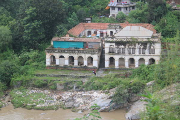 The Jal Binayak Temple beside the Bagmati lies below the row of shops. The earthquake of 2015 destroyed the main shrine and it has been torn down to the ground. However, the building that surrounds the temple still stands. It’s the outer white structure that we see from a distance. Be very careful while walking down towards the river from the temple, as the large stone steps can be dangerously slippery, especially if you are wearing your hiking boots with tough rubber soles. Further downstream is the remains of the old cement factory that was closed down because of the severe pollution it caused all around.