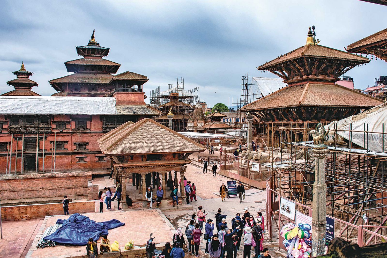 peddlers, children, vehicles, and animals. The view was hypnotic. Everywhere you looked, your eyes met with a different perspective of the place. Lovers are seen cuddling on the steps of the structure, hiding their faces and stealing a kiss or two, while carefully analyzing their environment. It would be troublesome for them if they are caught by the regular patrolling of police officers. As my food arrived, I heard a foreign language being spoken right below where I was sitting. Peering out the window, I saw 10-15 tourists with cameras, selfie sticks, and masks on their faces, a guide with them explaining everything. As soon as these tourists arrived, they were surrounded by street peddlers and children trying to sell them arts and crafts. After exploring the area, the guide instructed them to make a single file, and they disappeared into the crowd.