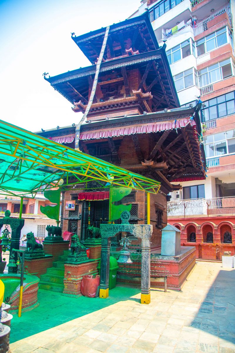 In due time, it was completed—a three-storied pagoda-style temple with a sattal (rest house) and pati (loggia) on the premises. It was constructed using traditional bricks, tiles, and timber, and with all the customary elements, such as gajur, pataka, and torana. Of course, during its making, certain specific rituals had to be followed; after all, it was a temple. A special puja preceded every stage of construction to honor Bhairav Panchali, the presiding deity of the shrine. Numerous animal sacrifices were made.
