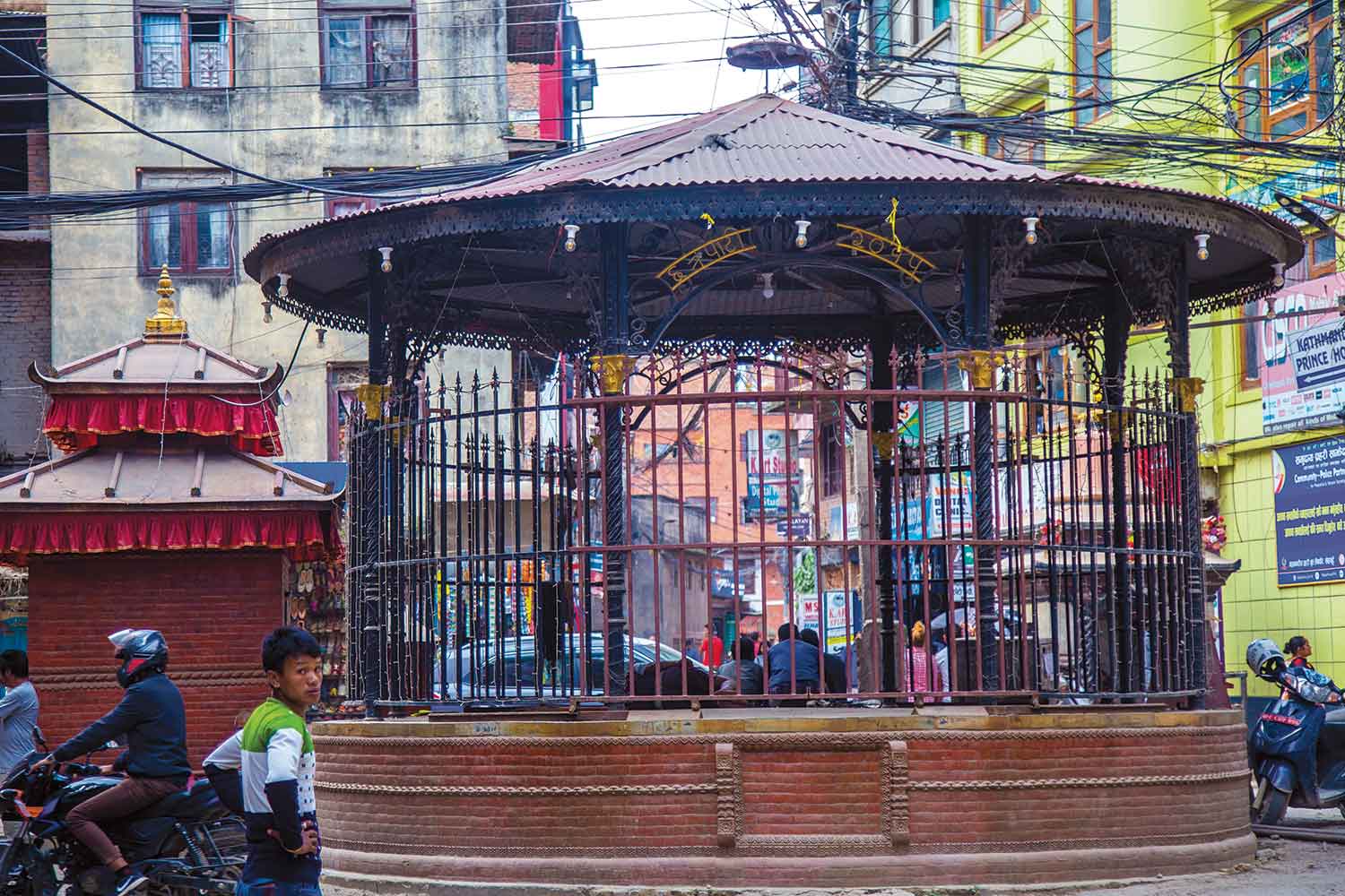 It was spring, and the weather was rosy and lovely. A sparrow gently flew in and perched itself on the gajur (spire) of the roof of the traditional resting stop, or pati, which was circular in form. The roof was the shape of an umbrella, from which the name of the place was derived. The structure is situated at the confluence of six roads: one leading to Basantapur; another to Asan and other different roads heading towards Thamel, Paknajol, Dhobichaur and Dhalko. The sparrow chirped oblivious to the fact that so many bhajans had taken place in it. My own grandfather used to play the harmonium in those bhajans in this same pati. In a way, there happens to be an unlikely affinity between those who played in the bhajans, and the bird. Both of their singing talents are the result of divine blessings. So many people must have found respite in this structure during their long journeys in the old days. And the sparrow definitely had no idea how the pati now found itself in the middle of innumerable traffic jams.